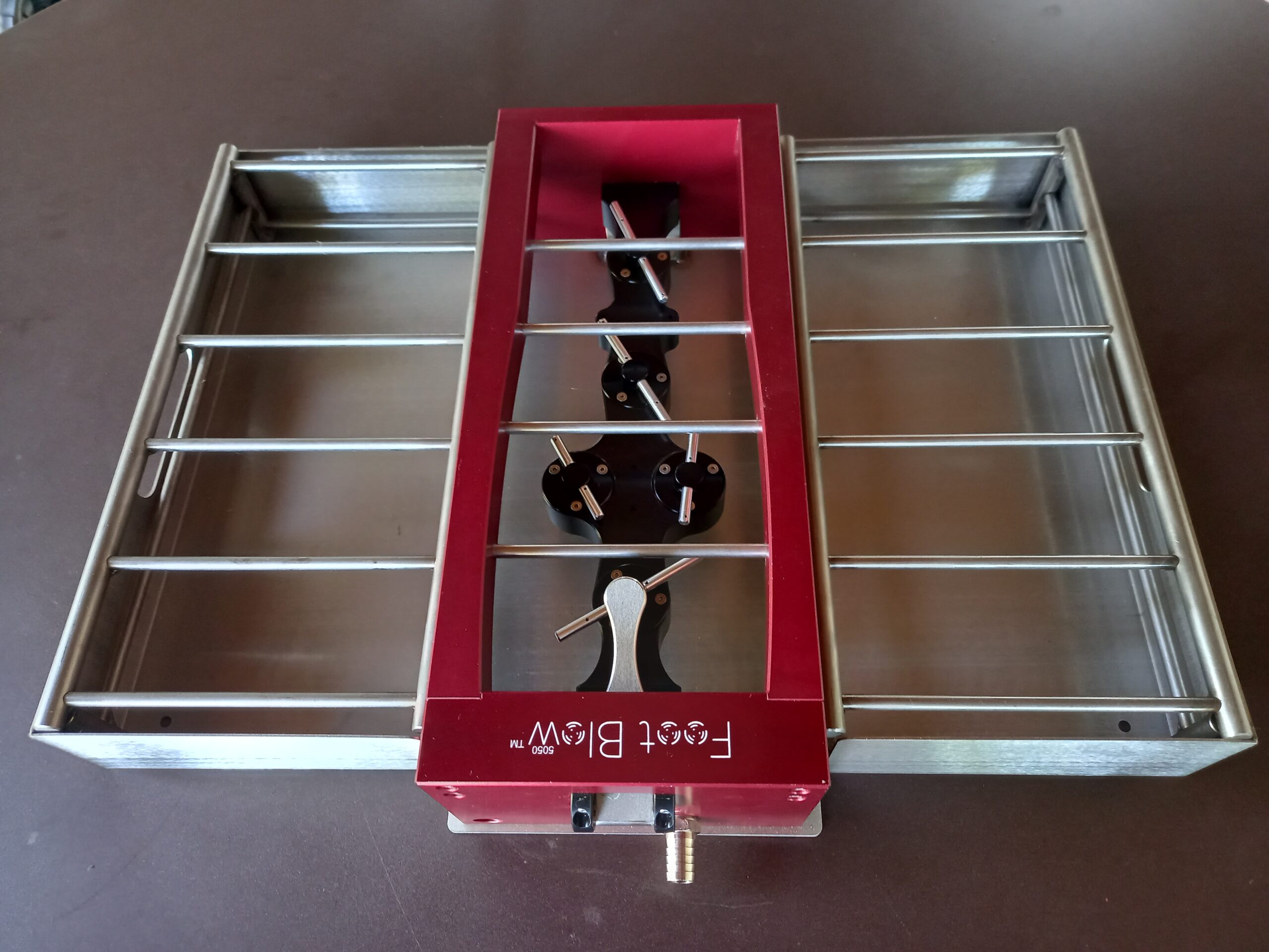 Avec sa couleur pompier rouge et noire anodisée, le Foot Blow 5050 est un confort pour les employés et salariés avant d’entrer dans le vestiaire pour se changer, mais aussi un gain de temps pour les sociétés qui sauront vite le rentabiliser.